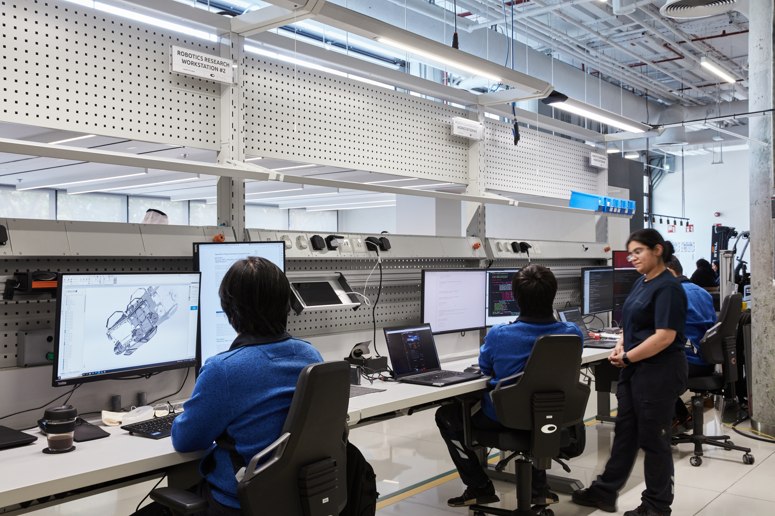 ممارسة أنشطة البحث والتطوير التطبيقي التي تجمع بين الأسس النظرية الأكاديمية والتطبيقات العملية في الصناعة، من أجل تصميم وتطوير حلول الروبوتات وتقنيات الذكاء الاصطناعي المتقدمة. وتركّز أنشطة البحث والتطوير في المختبرات على تطوير حلول عملية ومؤثرة للتحديات التي تواجه القطاعات الرئيسية.