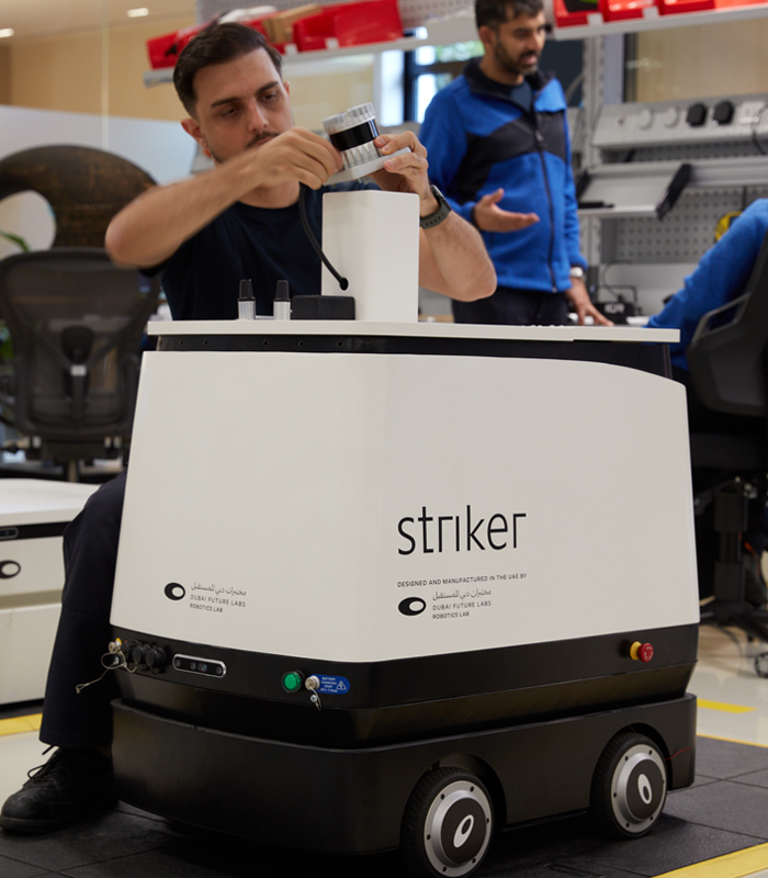 دعم نشر استخدام التقنيات المتقدمة والناشئة في دبي من خلال إتاحة المرافق التقنية، والمعرفة العملية، وسن القوانين التنظيمية الداعمة للمبتكرين. ونساعد أيضاً في ترسيخ مكانة دبي كمدينة رائدة عالمياً في تطوير الروبوتات والأتمتة وتبني استخدامها بين قطاع الصناعات.